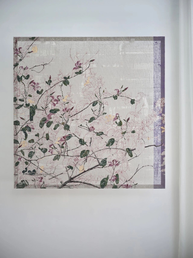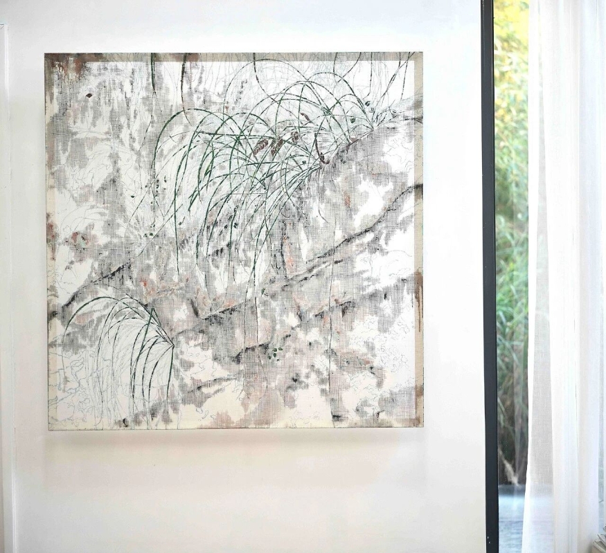 這些特殊的材料擁有介於“有與無之間”的物性,恰好能承載他痴迷的“生長感”與“時間性”。他的畫不是一幅靜態的風景,而是風景中的植物在光線移動下緩慢生長的姿態和過程。現在吳觀真畫面上的留白日益增多,他知道不必填滿畫布。自然沒有宣言,只有默默生長。春天就是它的宣言。