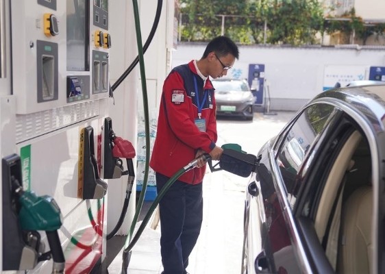 中國雲南一加油站工作人員為汽車加油。新華社資料圖片