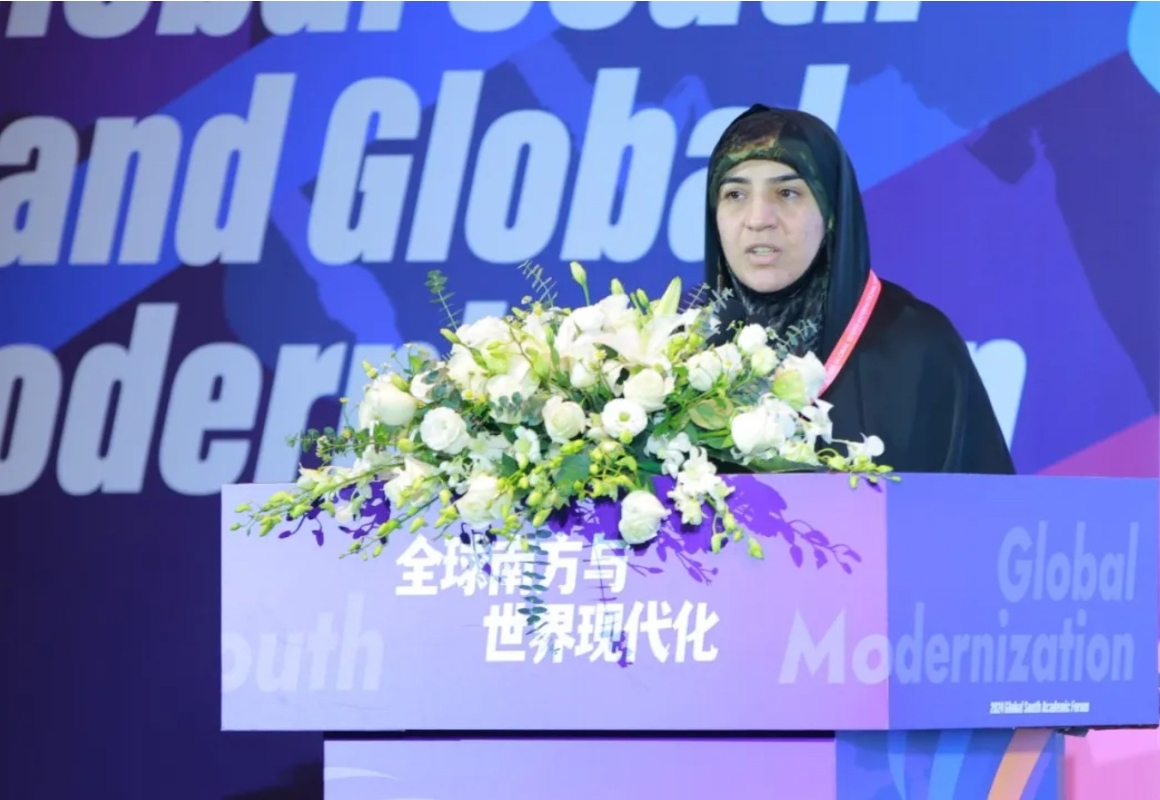 伊朗德黑蘭大學世界研究學院北美研究系副教授澤納布·加塞米·塔里全球南方學術論壇(2024年12月)上發言(圖源:全球南方學術論壇)