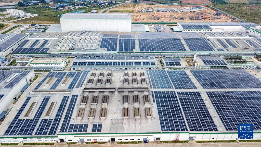 泰國目前的工廠屋頂光伏發電項目,位於距首都曼谷約100公里的春武里府WHA偉華工業區內,由中國企業浦林成山與泰國WHA偉華基礎設施及電力大眾有限公司合作建設。一期項目裝機容量19.44兆瓦,於2022年11月底開始運行。項目二期工程預計明年完工,運行併網後總裝機容量將達到24.24兆瓦,年發電量3000餘萬度,每年可減排二氧化碳3萬噸、節約1.5萬噸標準煤。新華社記者 王騰 攝