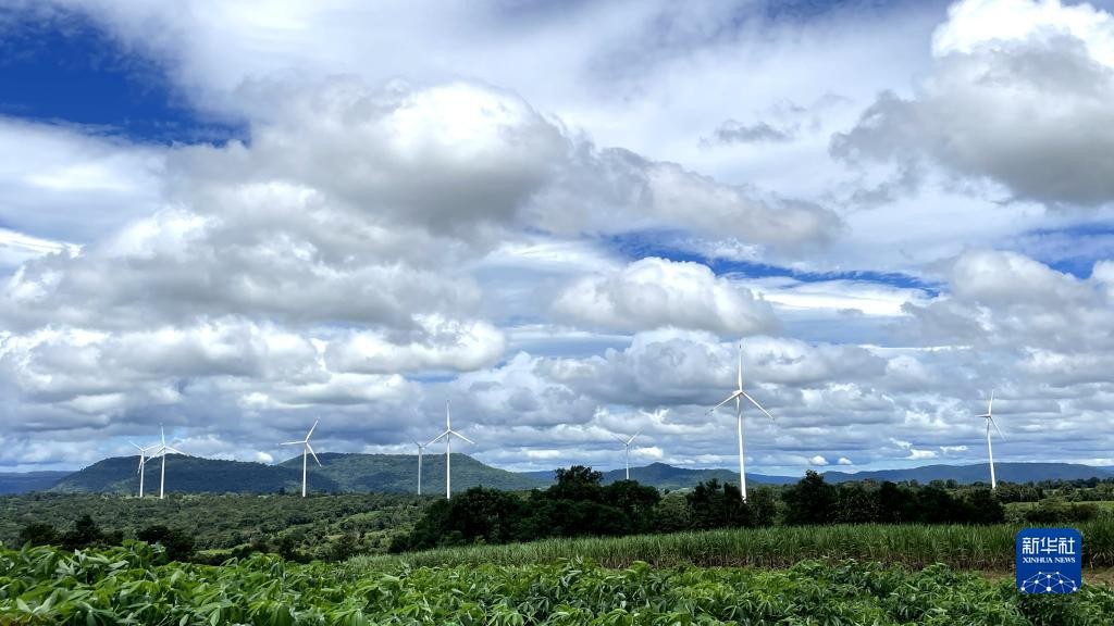 這是在泰國猜也蓬府拍攝的由中國金風科技提供的風力發電機(資料圖)。新華社記者 宋宇 攝