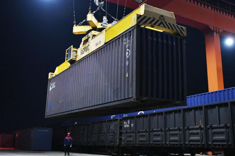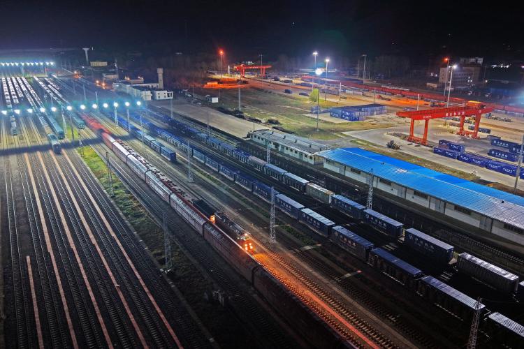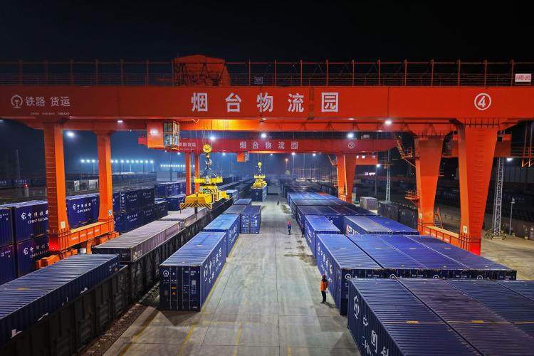 4月11日,煙台至廣州鐵路集裝箱班列開行滿一周年,發送化工、食品、機械設備等貨物超21萬噸。貨物抵達廣州後將分撥至港澳,為「山東製造」更好地融入粵港澳大灣區注入了強勁動能。新華社發(孫文潭 攝)