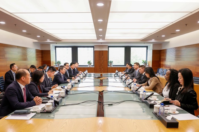 4月13日,中國商務部國際貿易談判代表兼副部長李成鋼在京會見美國福特汽車公司全球執行副總裁兼首席政務官柯立。圖源:中國商務部
